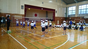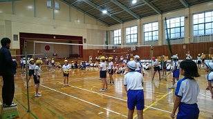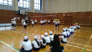 本校では5年1組・3組が八千把小学校の5年生と試合を行いました。5年2組は八千把小に行き一緒にビーチバレーを楽しみました。