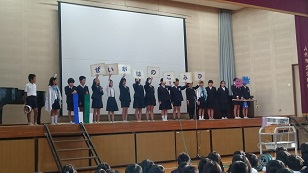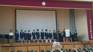 水俣病についての説明 群読・歌の発表 水俣ハイヤも踊りました