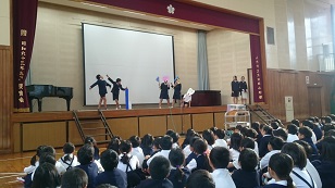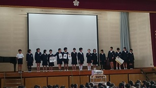 広報委員会と保健委員会の発表がありました。広報委員会は、広報委員会が行っている壁新聞や掲示物張り替えの紹介、保健委員会は歯磨きとかむことの大切さを劇で発表しました。