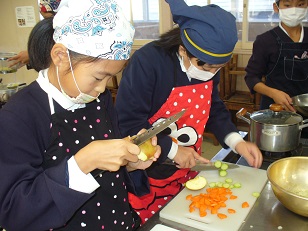 ちなみに、子ども達が着ているエプロンは、昨年自分たちで作ったものです。