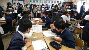今日は、生命創造をテーマに、命の大切さについて考えました。事前に家庭で調べていた12年間の成長についてグループで話し合い、保護者の思いを考えました。