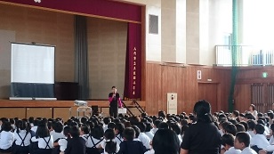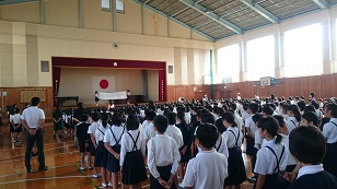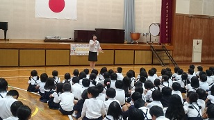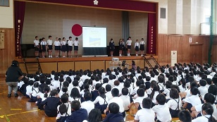 校長先生から早寝早起き朝ごはんを頑張ろうと挨拶 義務教育課の先生から、今日の説明がありました