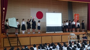 やつしろしりつおおたごうしょうがっこうです。 合(愛)言葉は、「にこにこ元気! 太田GO!!」