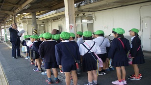 各学級に分かれて、町のいろいろな場所を探検しています。