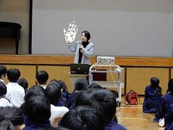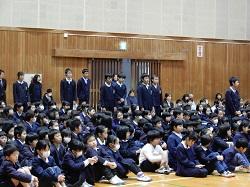 さて、一方でもう一つの終わり、終業式が行われました。式の中では、校長先生から、あいさつ、掃除、聴き方について2学期のふりかえりがありました。保健室の蓑田先生からは、冬休み中病気にならないために手洗いやマスクをつけることの大切さについてお話がありました。くしゃみをすると教室いっぱいくらい菌がとぶそうです。