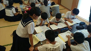 龍峯小・太田郷小の6年生対象に、10人の白百合高校の生徒が、夏休みの宿題などを教えてくれました。