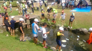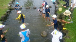 今回は、「川の安全学習交流会」に参加しました。熊本地震で大きな被害を受けた御船町の児童と一緒に、川遊びを楽しみました。球磨川の親水護岸で、カヌー体験などいつもできない遊びに子ども達は大喜びでした。