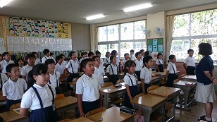 提出物もいっぱい並んでいます 校歌斉唱も教室で元気よく歌いました