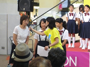 多くの観客の中、音楽部のみなさんが、阪神淡路大震災のあとつくられた復興ソング「幸せ運べるように」と、先日のコンクール課題曲「ぼくらのエコー」を発表しました。