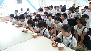 昼休み家庭科室で行われましたが、3日間雨だったこともあり、家庭科室前には長蛇の列ができていました。