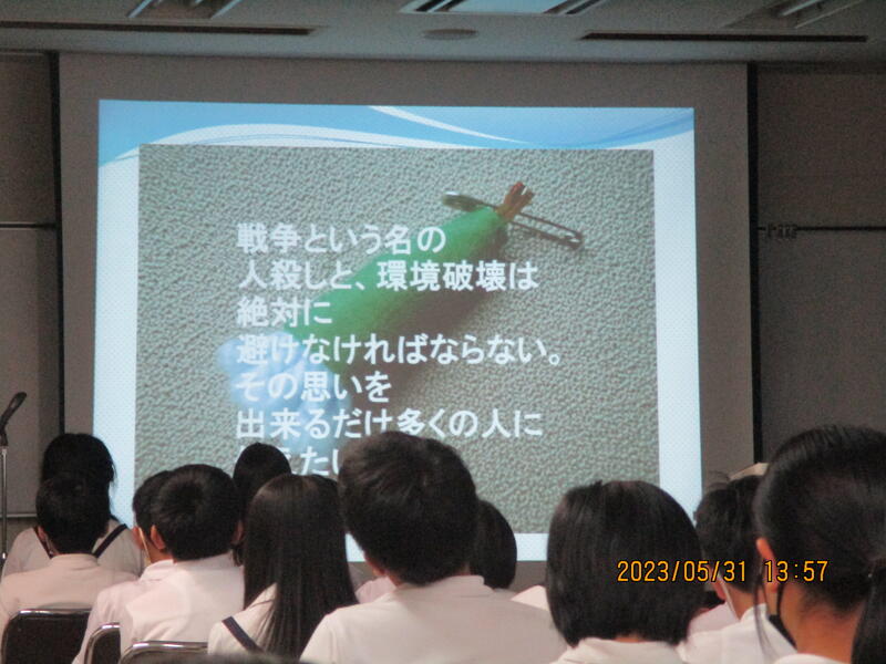 今回学んだことを生かし、今後の学校生活でも平和について考えていきたいと思います。