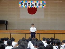 各学年で選ばれた代表6人が練習の成果を精一杯披露してくれました。どの子も話にあった話し方を工夫し、挿絵もないのにその場面が目の前に広がっていくようでした。