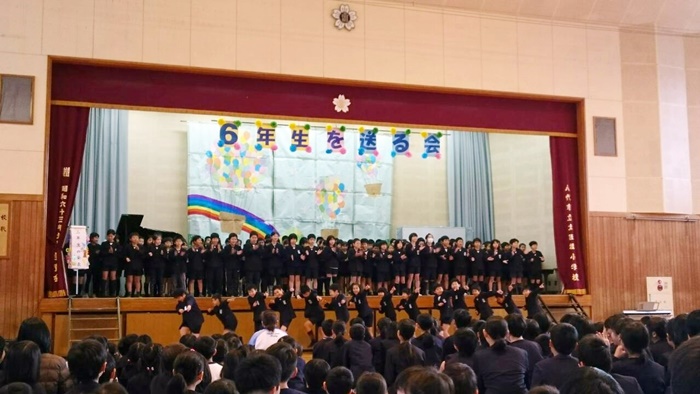 ↑6年生の出し物「旅立ちの歌」