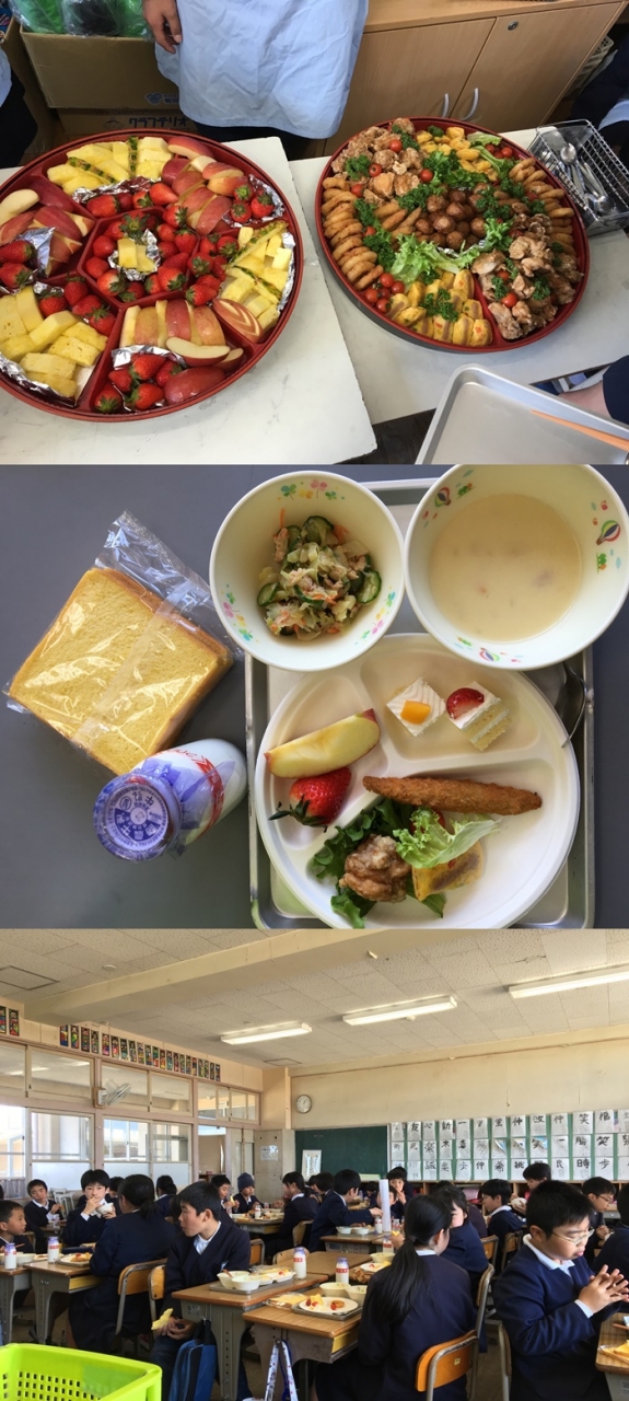 どれでもいくつでもというわけではないのですが、栄養のバランスも考えながらパーティーのように楽しく給食をいただきました。