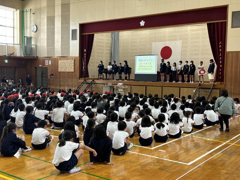 一年生を歓迎するクイズ大会では、大いに盛り上がる子供たちの姿がありました。