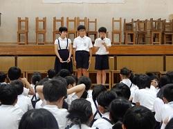 命を大切にする集会では、各クラスで話し合ったことの発表と6年生が修学旅行で学んできたことの発表がありました。