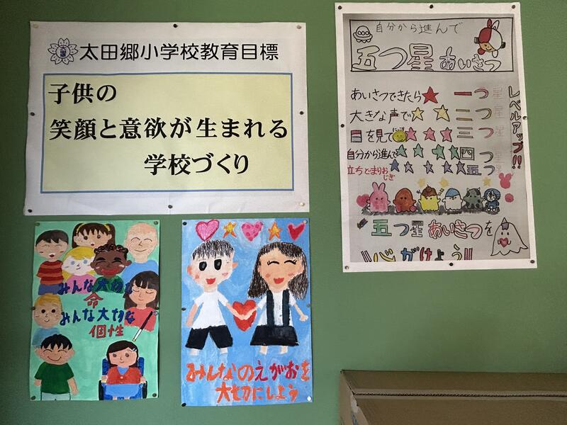 太田郷小学校では、笑顔であいさつのできる素敵な児童の育成を目指し、五つ星あいさつの呼びかけを行っています。