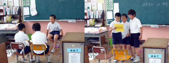 即興で作ったネタで、お笑いをみんなに披露してくれたのは、4年生のあるクラスです。