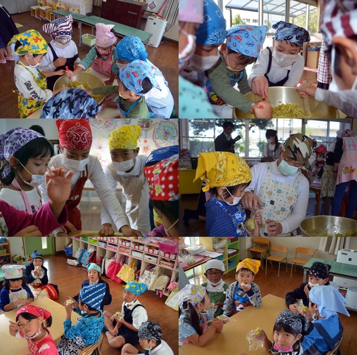 次は、お芋でおやつを作るそうですよ。何ができるのかな(*^-^*)