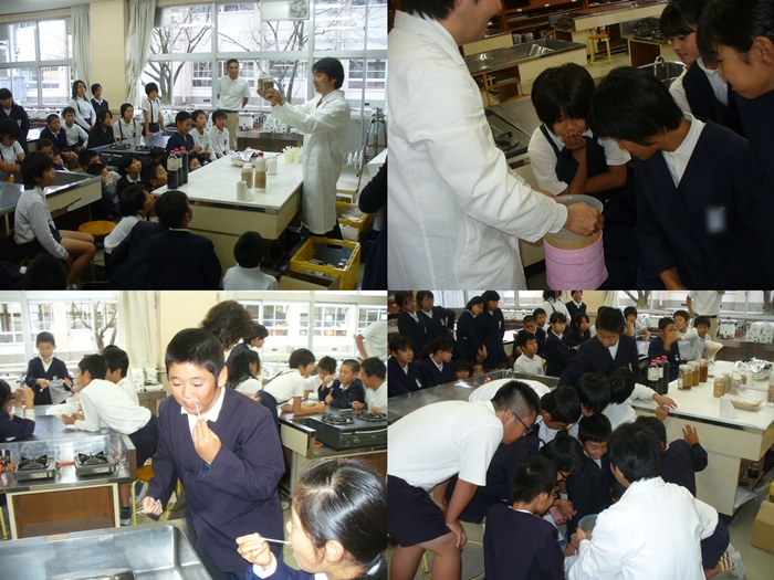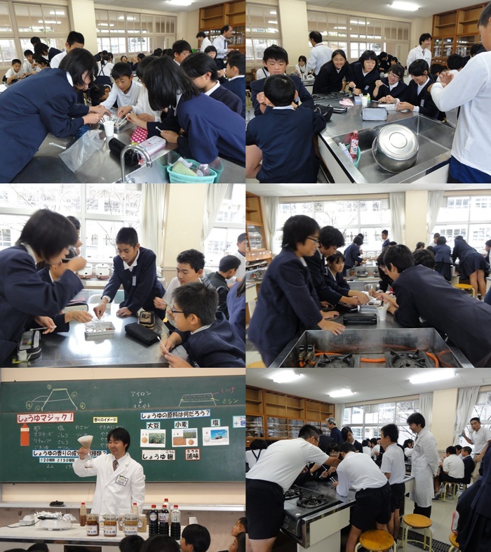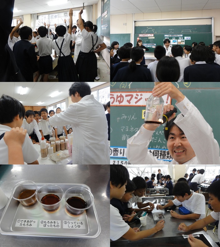 日本醤油協会の方の出前授業で、お醤油がどのようにしてできるのか、大豆の変化、麹菌のはたらき、もろみの味見など盛りだくさんの内容であっという間の1時間でした。