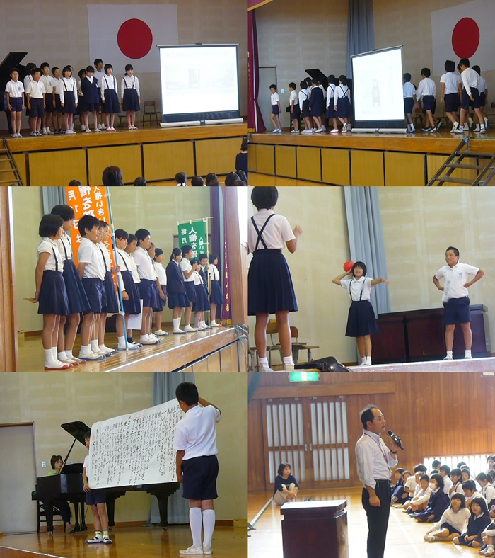 図書委員会からは図書に関するクイズやお願い、太田郷委員〔人権〕からは、劇を通じていじめや差別をなくそうという呼びかけがありました。
