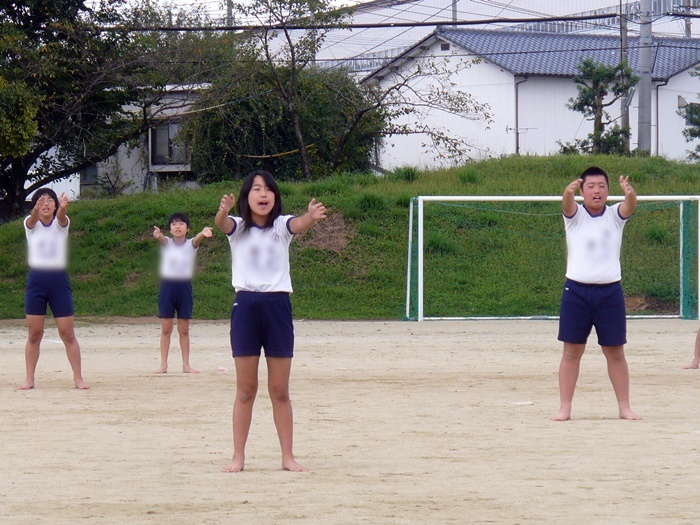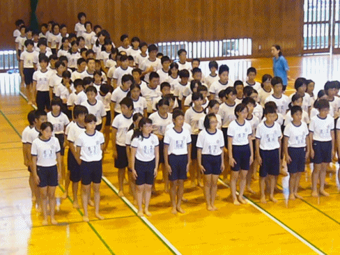 ↓太田郷小の校歌は振りがついています。とても珍しいですね。伝統の振り付けです。