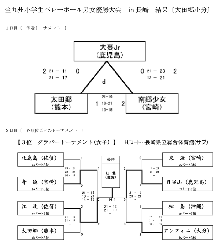 ※結果は、長崎県小学生バレーボール連盟様のサイトより一部引用させていただきました。
