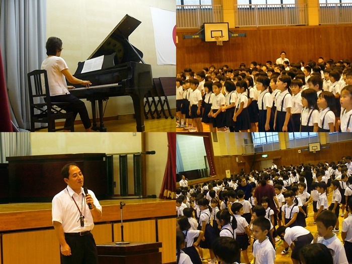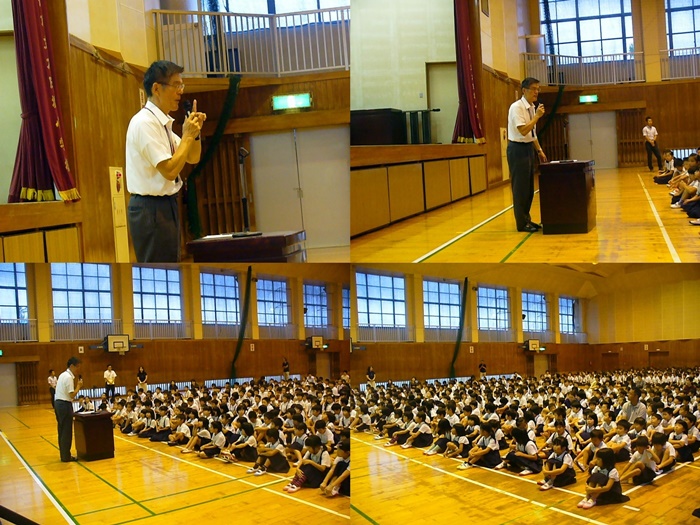 今日は始業式でした。校長先生は、夏休み中に事故がなくみんなが元気に過ごせたことがとっても嬉しいとおっしゃっていました。
