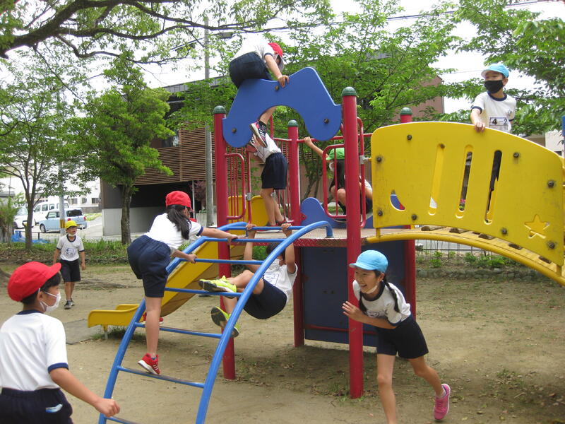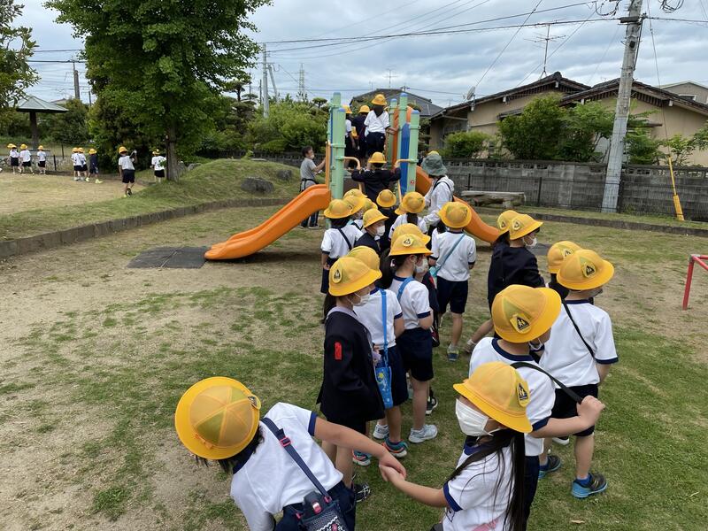 遠足では、各学年でそれぞれの目的地に行き、友だちとの交流を楽しんでいました。