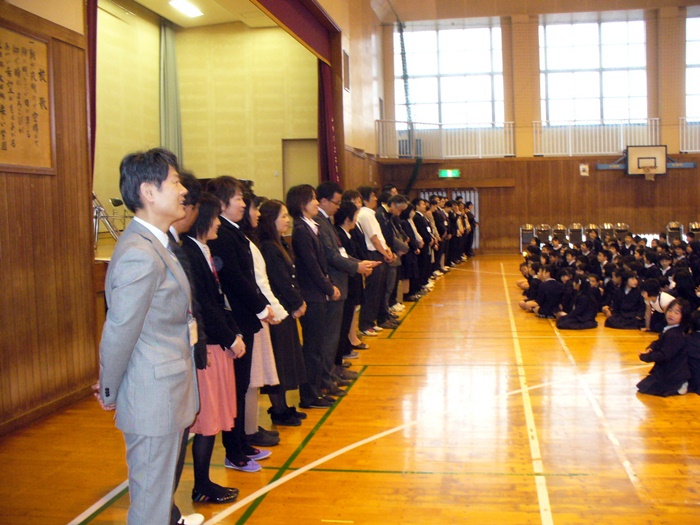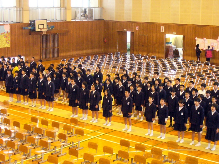 二中では、「五つ星あいさつ」というあいさつ運動が行われているそうです。あいさつをするときは五つのポイントを考えながらあいさつし、それができたら五つ星になるというものです。(例えば立ち止まって礼をするなど)。これを三校で実践することになりました。