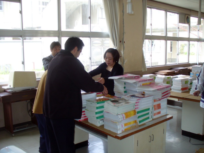 新一年生を迎えるために、準備をしました。(これは、教科書の準備です。)