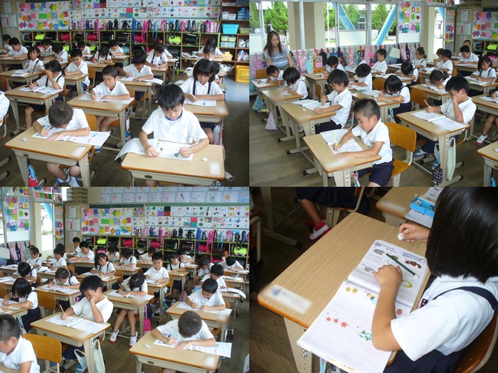 先日は一年生のクラスでした。入学して4か月弱ですが、御覧のように自分たちでしっかり勉強できています。入学した当初と比べるとびっくりする成長です。