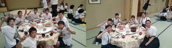 クラスの友達と一緒にこんなにたくさんでワイワイ食べるのは去年の集団宿泊以来です。