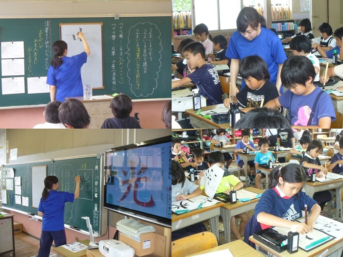 今日は、四年生のクラスの先生の習字の授業におじゃましました。