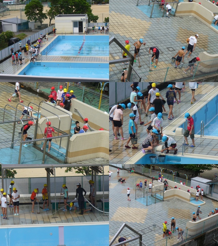 すっかりきれいになったプールでみんな楽しく泳ぎましょう。六年生にもお礼を言ってくださいね。