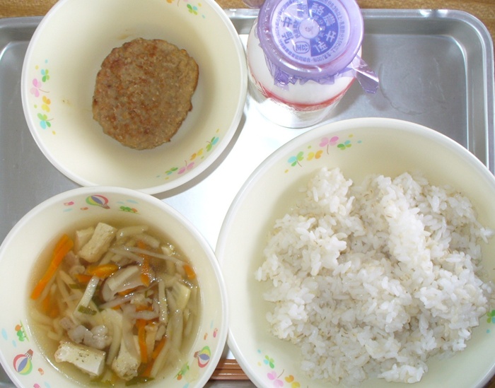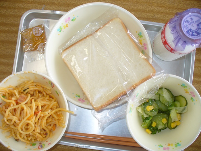 さあ、そんなおじさんの独り言はともかく、今日のメニューは、スパゲティ。ソースには八代産のはちべえトマトが使ってあるとのことです。