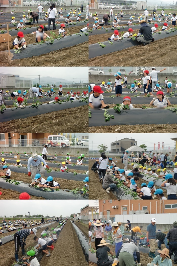 毎年、学校で低学年が作っているのですが、今年は八代広域交流地域振興施設及び松中信彦スポーツミュージアムの共催で、新八代駅近くの畑で行われました。