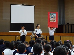 集会では、太田郷運営委員会から「廊下歩行」の呼びかけやポスター作成の取り組みについて、図書委員会からは読書週間(10月29日~11月9日)の取り組みや本にまつわるクイズ、陸上記録会(6年生)の表彰、校長先生のお話、今月の歌の斉唱、感想交流を行いました。