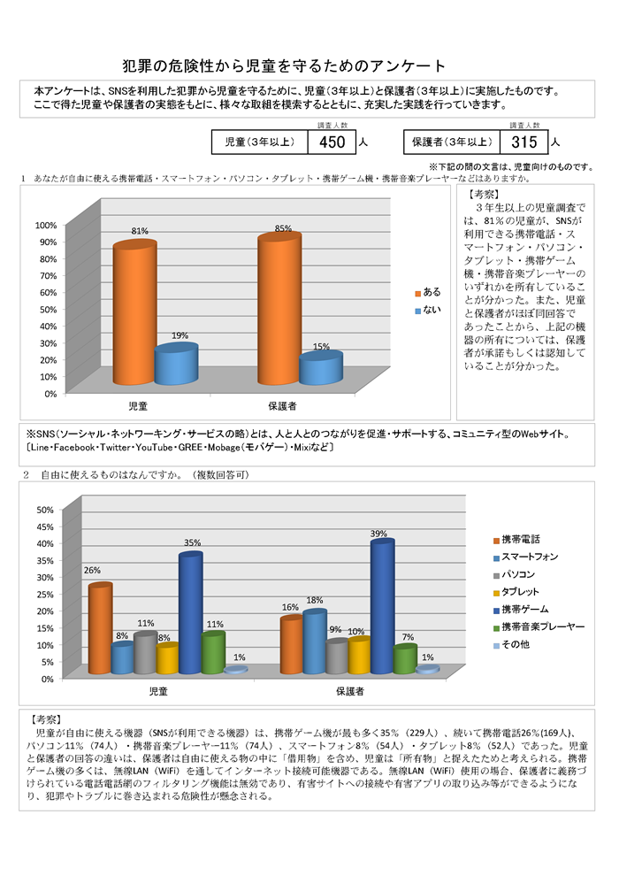 情報技術の進歩は、私たちの生活を豊かにするものですが、犯罪に巻き込まれる危険性もはらんでいます。子どもたちが犯罪に巻き込まれないよう、保護者の皆さんのご協力をよろしくお願い致します。