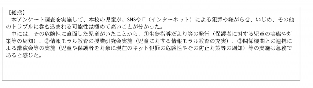 太田郷小学校としましても、子どもたちを危険から守るために、インターネットの危険な部分や守るべきルールなどを計画的に指導しています。