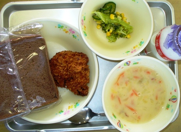 通常の給食に加えて、揚げ物や果物、それになんとケーキが2個も用意してありました。