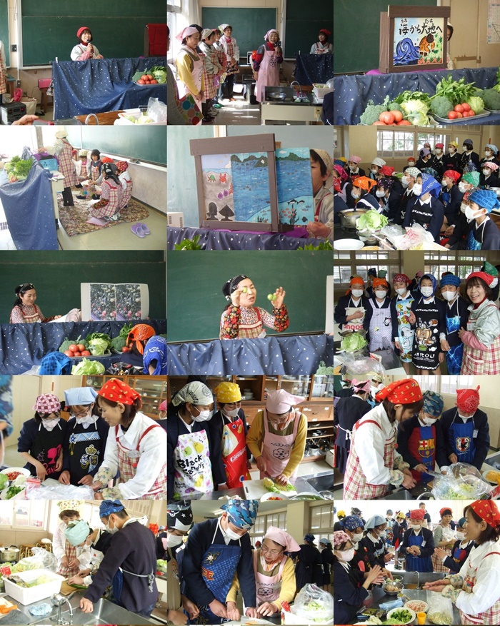 JA郡築支所の女性部の皆さんが中心となって、太田郷の方も含め、ボランティアでたくさんの皆さんが、子どもたちに食の大切さや楽しさを教えに来てくださいました。