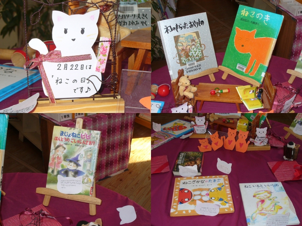 図書館の先生は、いろんなことをご存じで、ネコの日にちなんで、たくさんの「ネコ関連」の本を紹介してくださっています。