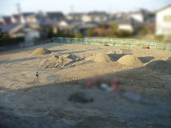 いまでは、砂利が入れられ整地工事が行われています。整地されたあとの利用法はまだはっきりしていないのですが、おそらくお客様用の駐車場などに利用されるのではないでしょうか。(未定ですが・・・。)