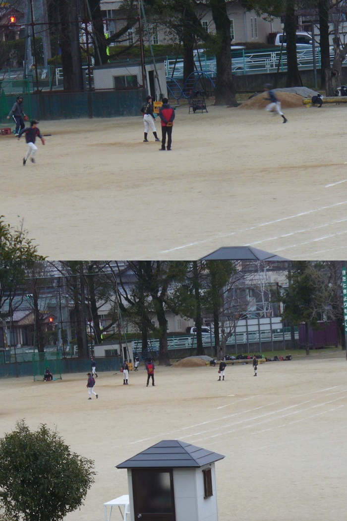 これは、午後6時頃の野球部の練習のようすです。まだ明るいですね。6年生の部活動もあとわずか、最後の大会に向けてどの部活動も頑張っています。