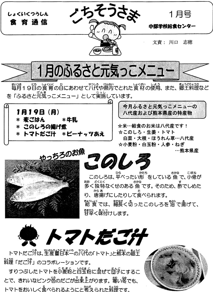 まさに、「地産地消」です。明日のメニューは下のようになっています。楽しみにしていてください。