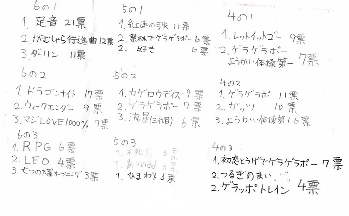 低学年が運動会で踊った「ようかい体操」くらいは聞いたことがありますが、あとは「(? 。?)」