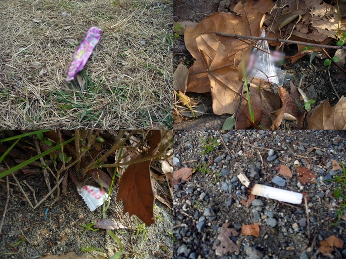 太田郷小は、私がこれまで経験してきたたくさんの学校の中では、かなりこういうごみは少ない方です。でも、ごく少数の人がこういうことをすることで、いやな気持になる人がたくさんいることをわかってください。