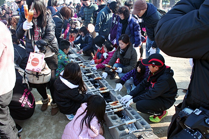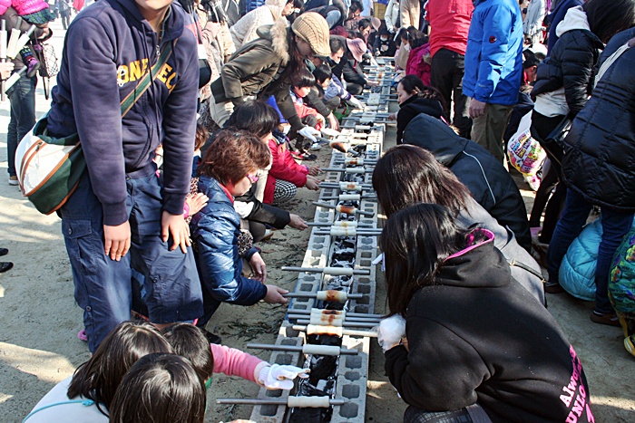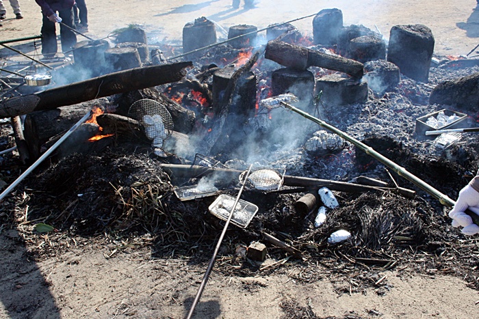 その火で焼いた餅を食べます。焼いた灰を持ち帰り自宅の周囲にまくとその年の病を除くと言われています。また、書き初めを焼いた時に炎が高く上がると字が上達すると言われています。