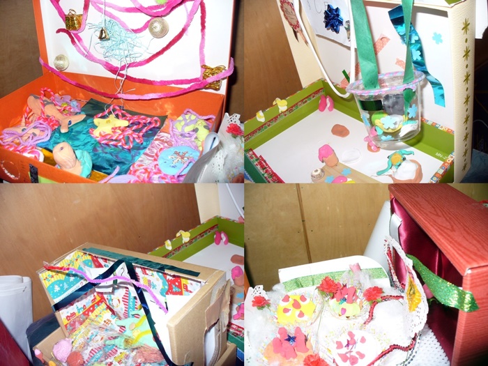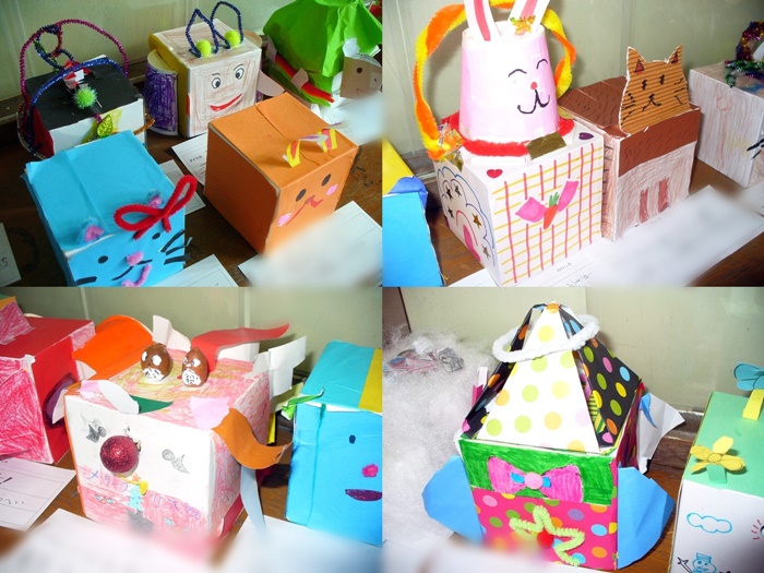 【3年生の作品】 「小さな箱の物語」 箱の中に自分の想像した世界を作り出します。